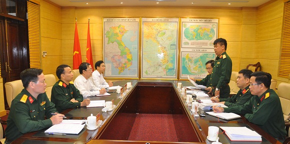 Thiếu tướng Vũ Bá Trung, Ủy viên BTV, Phó Chính ủy Tổng cục cùng Thường trực UBKT Đảng ủy Tổng cục làm việc với Tạp chí Kiểm tra.