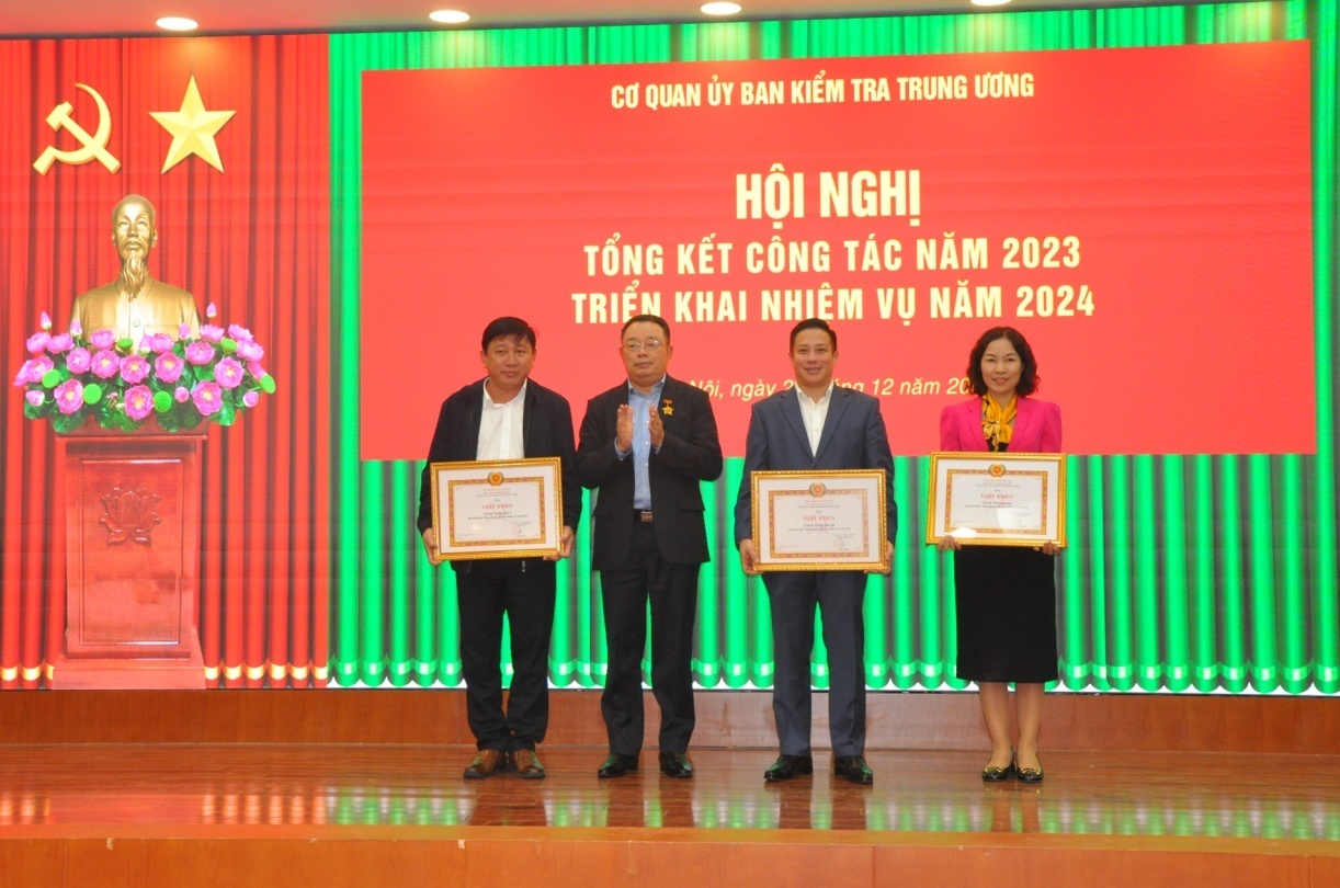 Nhân dịp này, UBKT Trung ương tặng Cờ thi đua năm 2023 và Bằng khen cho các tập thể và cá nhân có thành tích xuất sắc; tặng danh hiệu Chiến sỹ thi đua Cơ quan, Chiến sỹ thi đua cơ sở đối với các cá nhân; khen thưởng đối với các cá nhân có thành tích xuất sắc đột xuất trong các đoàn kiểm tra, giám sát năm 2023.