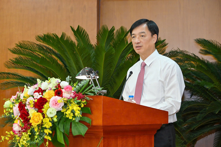 Đồng chí Trần Tiến Hưng, Ủy viên Trung ương Đảng, Phó Chủ nhiệm Ủy ban Kiểm tra Trung ương trình bày Báo cáo tóm tắt tổng kết phong trào thi đua, công tác khen thưởng giai đoạn 2020-2025.