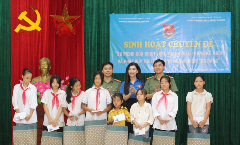 Trước khi tiến hành tổ chức Tọa đàm, sinh hoạt chuyên đề "Sứ mệnh của đoàn viên, thanh niên trong kế thừa và phát huy truyền thống ngành Kiểm tra Đảng", Đoàn đã trao tặng 10 suất quà cho các cháu học sinh có hoàn cảnh khó khăn, con gia đình chính sách trên địa bàn.