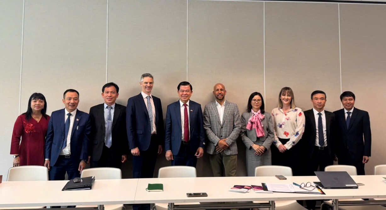 Đồng chí Phạm Hùng Tâm, Đại sứ đặc mệnh toàn quyền Việt Nam tại Úc tiếp đón Đoàn.