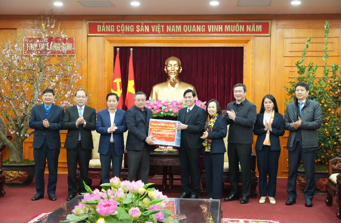 Đồng chí Trần Sỹ Thanh, Ủy viên Bộ Chính trị, Bí thư Trung ương Đảng, Chủ nhiệm Ủy ban Kiểm tra Trung ương và đoàn công tác tặng quà Tỉnh ủy Lạng Sơn.