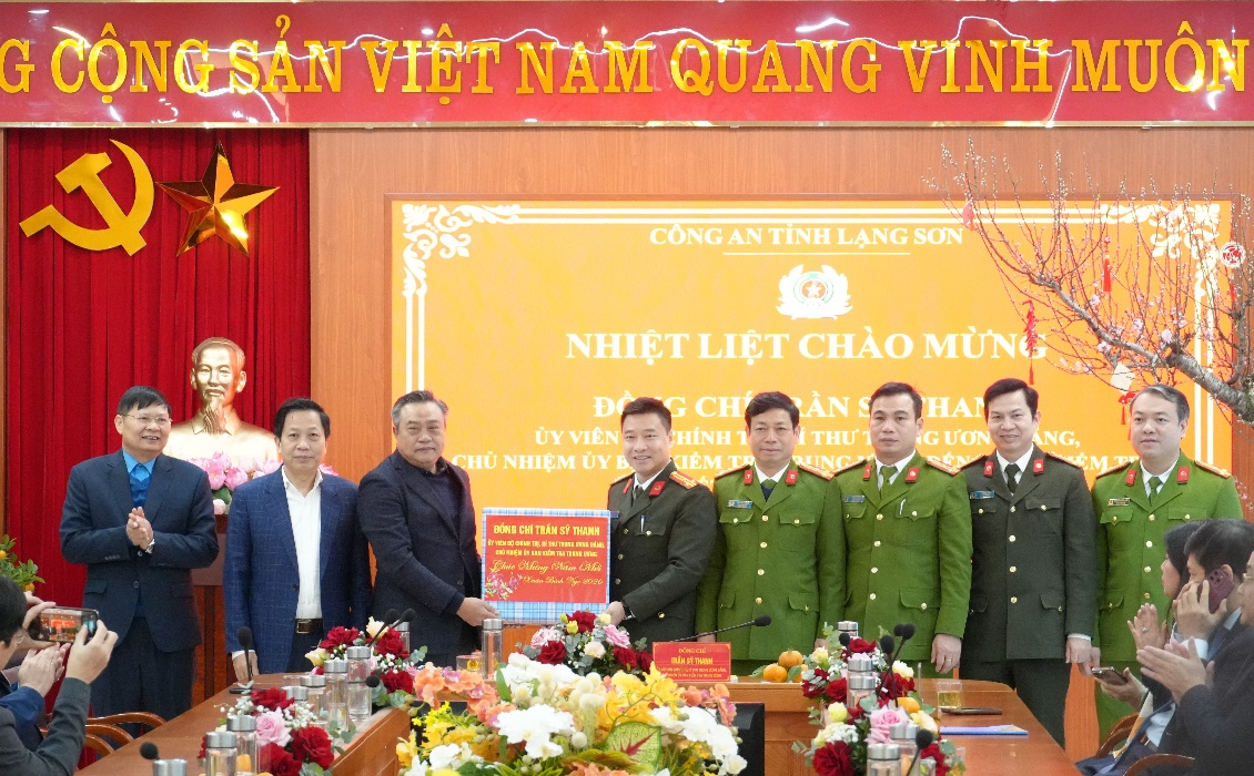 * Sáng cùng ngày, đoàn công tác do đồng chí Trần Sỹ Thanh, Ủy viên Bộ Chính trị, Bí thư Trung ương Đảng, Chủ nhiệm Ủy ban Kiểm tra Trung ương làm trưởng đoàn đã đi thăm, chúc tết cán bộ, chiến sĩ Công an tỉnh Lạng Sơn.