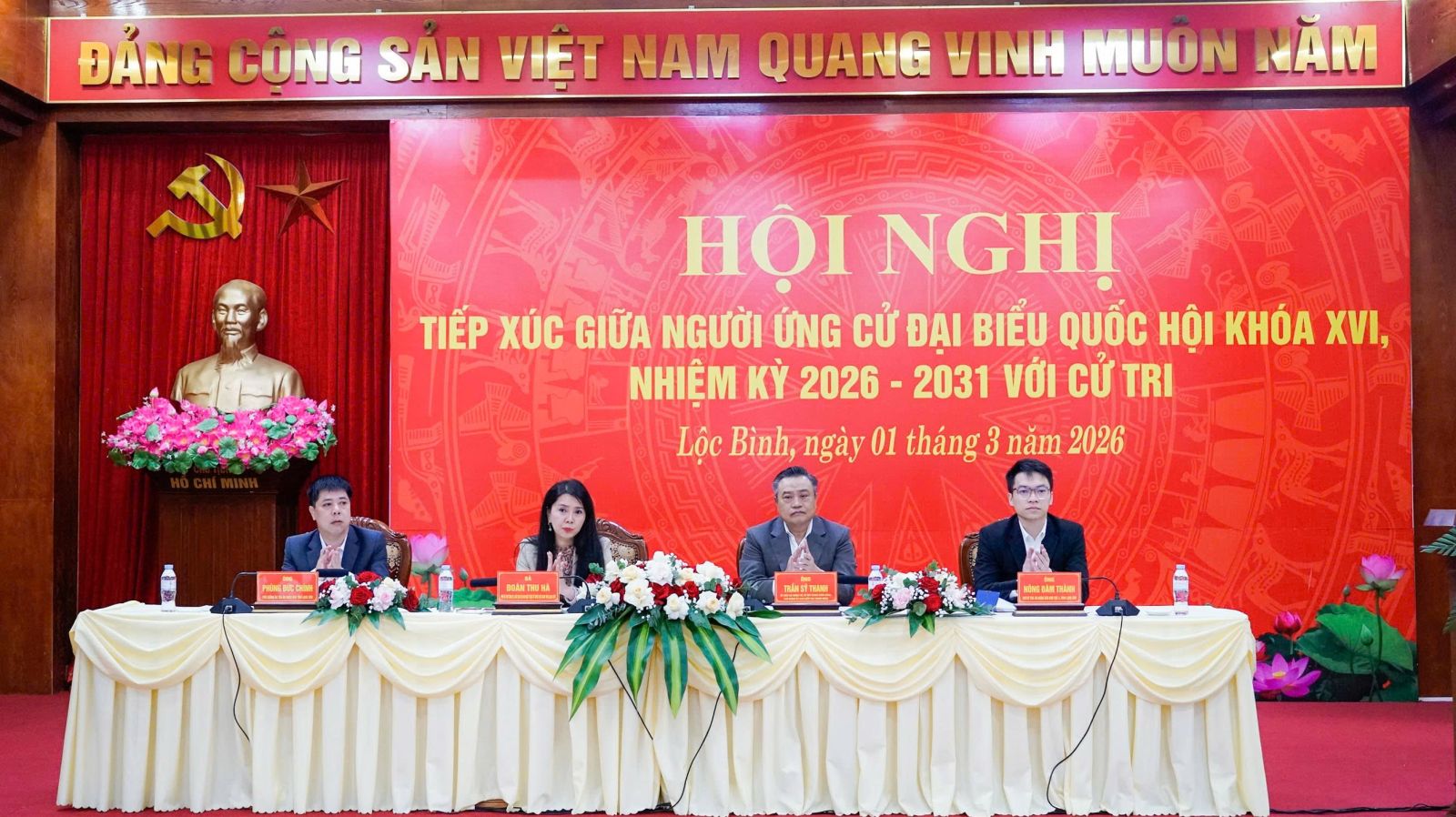 Các ứng cử viên đại biểu Quốc hội khóa XVI thuộc đơn vị bầu cử số 1 gồm các đồng chí: Trần Sỹ Thanh, Ủy viên Bộ Chính trị, Bí thư Trung ương Đảng, Chủ nhiệm Ủy ban Kiểm tra Trung ương; Đoàn Thu Hà, Phó Bí thư Tỉnh ủy, Chủ tịch Ủy ban MTTQ Việt Nam tỉnh Lạng Sơn; Phùng Đức Chính, Phó Chánh án Tòa án nhân dân tỉnh Lạng Sơn; Nông Đàm Thành, Thư ký Tòa án nhân dân Khu vực 4, tỉnh Lạng Sơn; Chu Thị Phương Thảo, Thẩm phán Tòa án nhân dân khu vực 1, tỉnh Lạng Sơn.