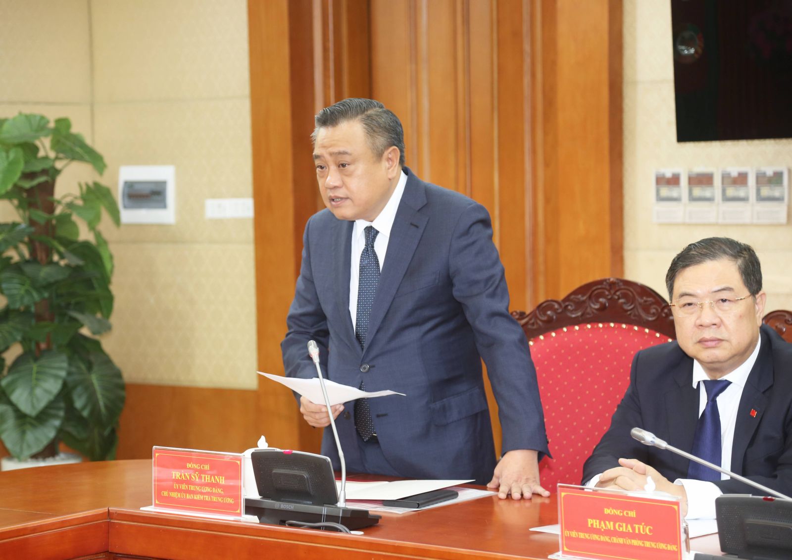 Đồng chí Trần Sỹ Thanh, Ủy viên Trung ương Đảng, Chủ nhiệm Ủy ban Kiểm tra Trung ương phát biểu tại Hội nghị