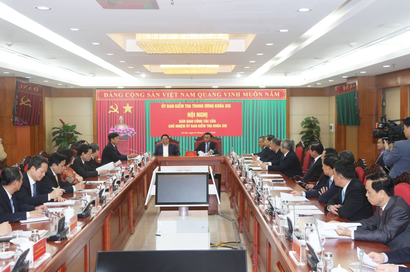 Chiều 7/11/2025, tại Hà Nội, Ủy ban Kiểm tra Trung ương tổ chức Hội nghị bàn giao công tác của Chủ nhiệm Uỷ ban Kiểm tra Trung ương khóa XIII. Thủ tướng Phạm Minh Chính và Thường trực Ban Bí thư Trần Cẩm Tú dự, chỉ đạo Hội nghị.