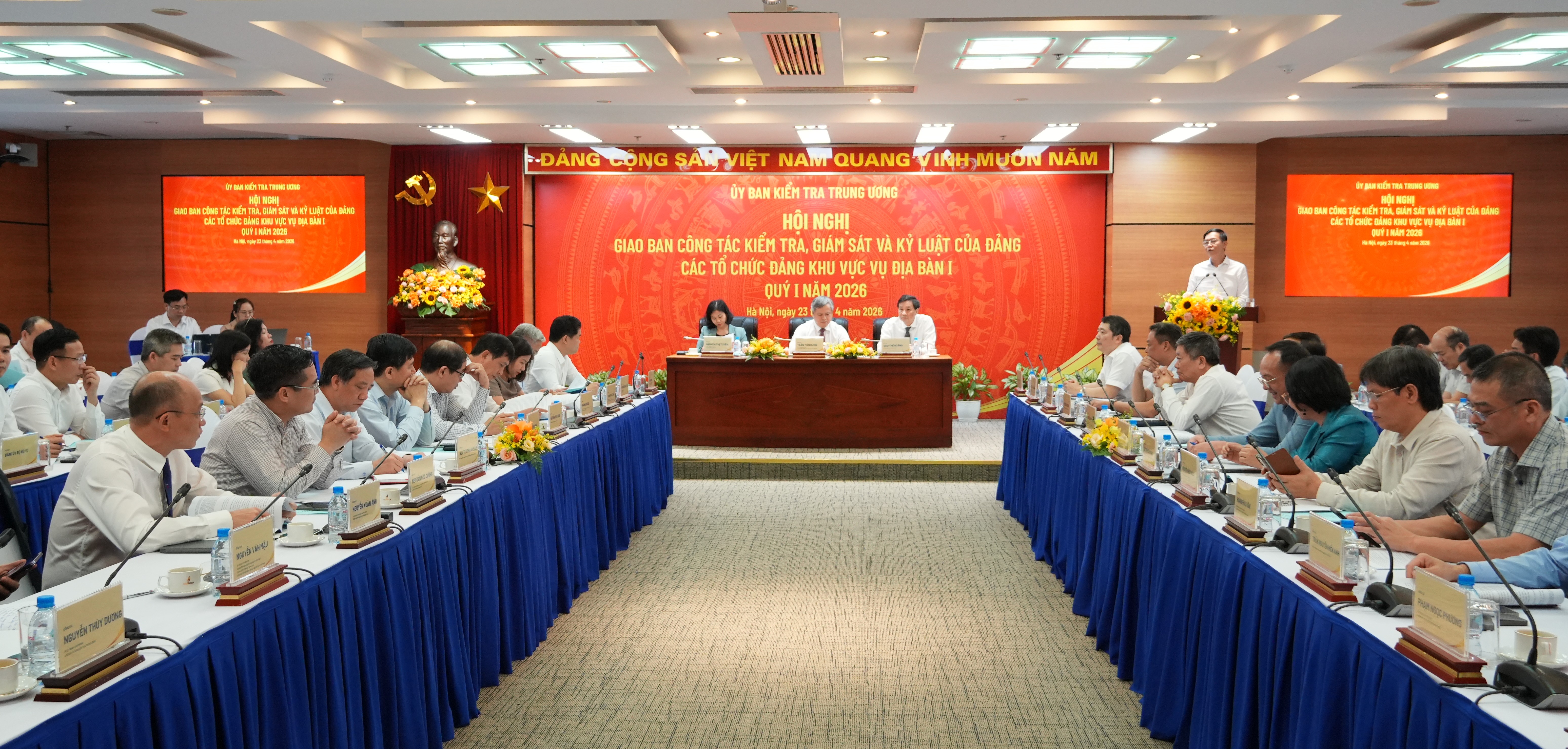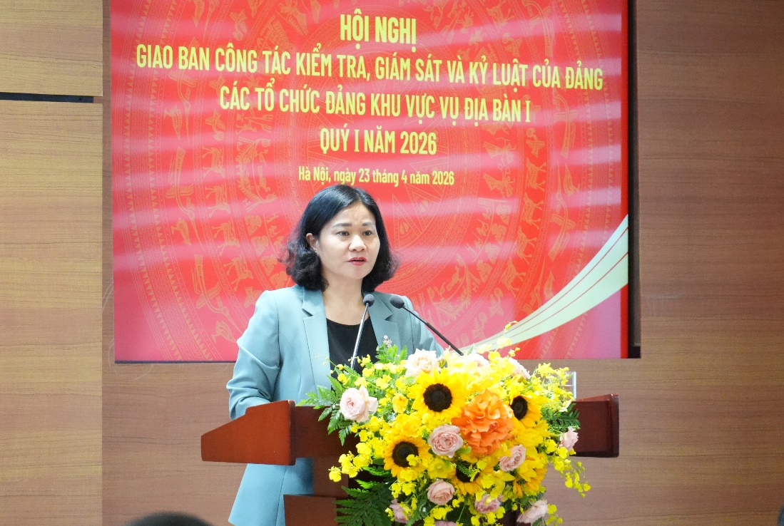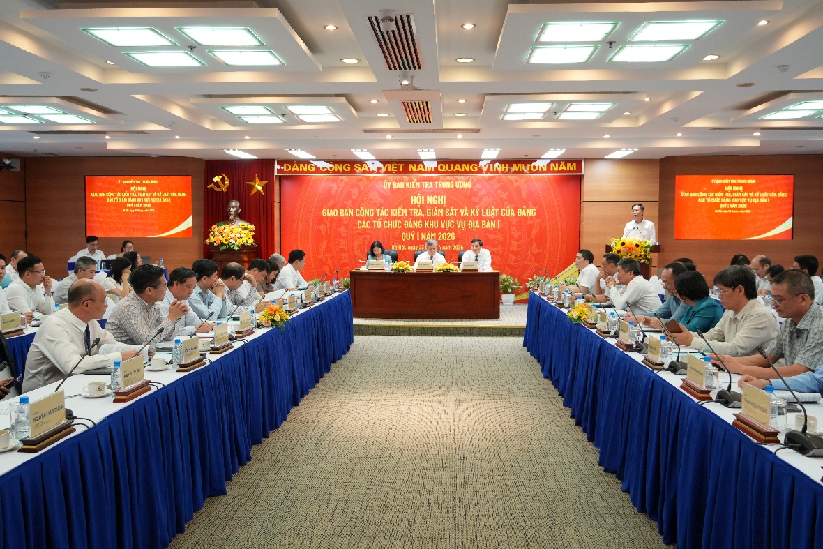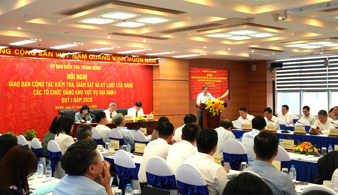 Chiều 23/4/2026, Ủy ban Kiểm tra Trung ương tổ chức hội nghị giao ban công tác kiểm tra, giám sát và kỷ luật đảng quý I năm 2026 các tổ chức đảng thuộc khu vực Vụ Địa bàn I theo dõi nhằm tăng cường trao đổi, phối hợp trong thực hiện nhiệm vụ chính trị, nâng cao chất lượng, hiệu quả công tác.