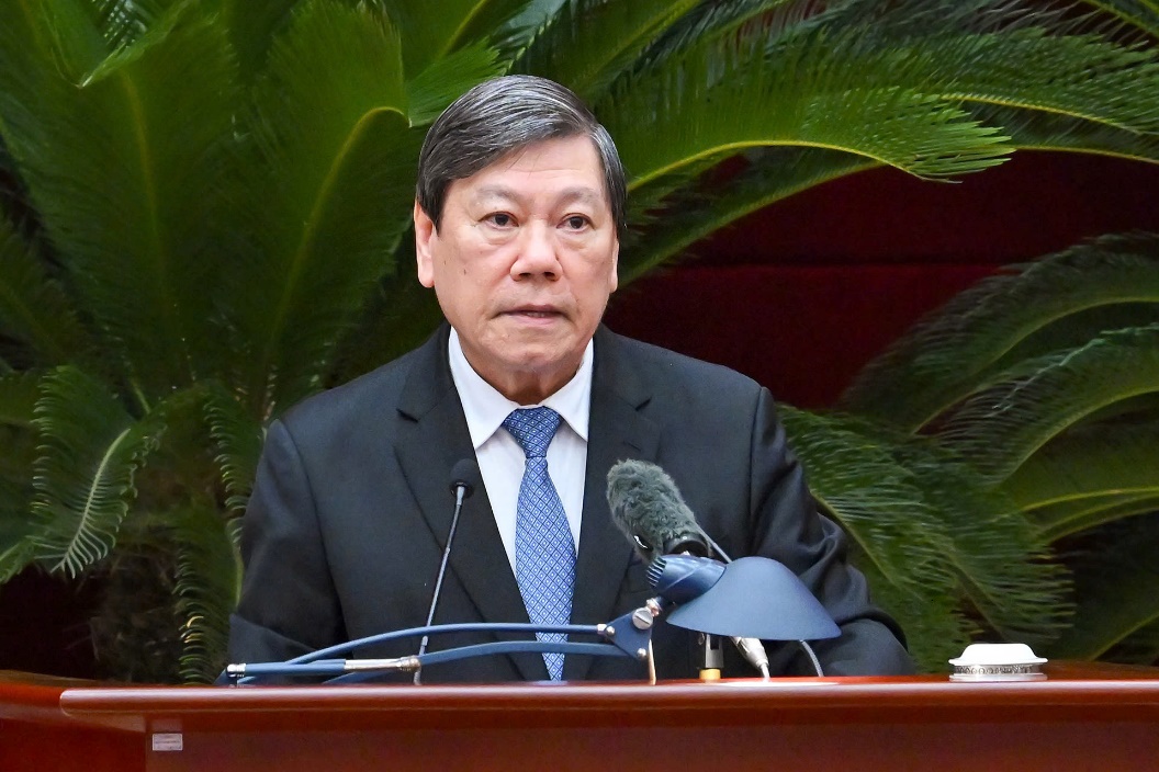 Đồng chí Trần Văn Rón, Ủy viên Trung ương Đảng, Phó Chủ nhiệm Thường trực Ủy ban Kiểm tra Trung ương trình bày Báo cáo kết quả công tác kiểm tra, giám sát và thi hành kỷ luật của Đảng nhiệm kỳ Đại hội XIII.