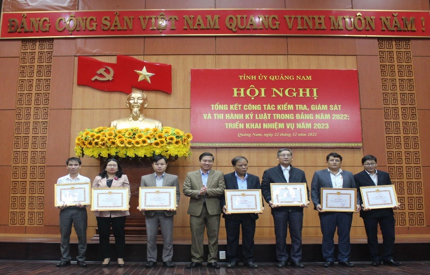 Nhân dịp này, UBKT Tỉnh ủy Quảng Nam đã tặng Giấy khen cho 7 tập thể và 7 cá nhân hoàn thành xuất sắc nhiệm vụ công tác kiểm tra, giám sát năm 2022; 04 tập thể, 04 cá nhân hoàn thành tốt nhiệm vụ; 02 tập thể, 02 cá nhân có thành tích tốt trong công tác phối hợp với UBKT Tỉnh ủy năm 2022./.