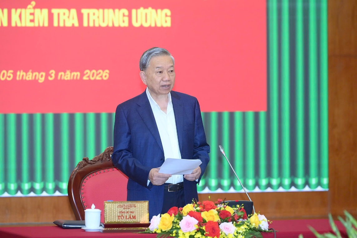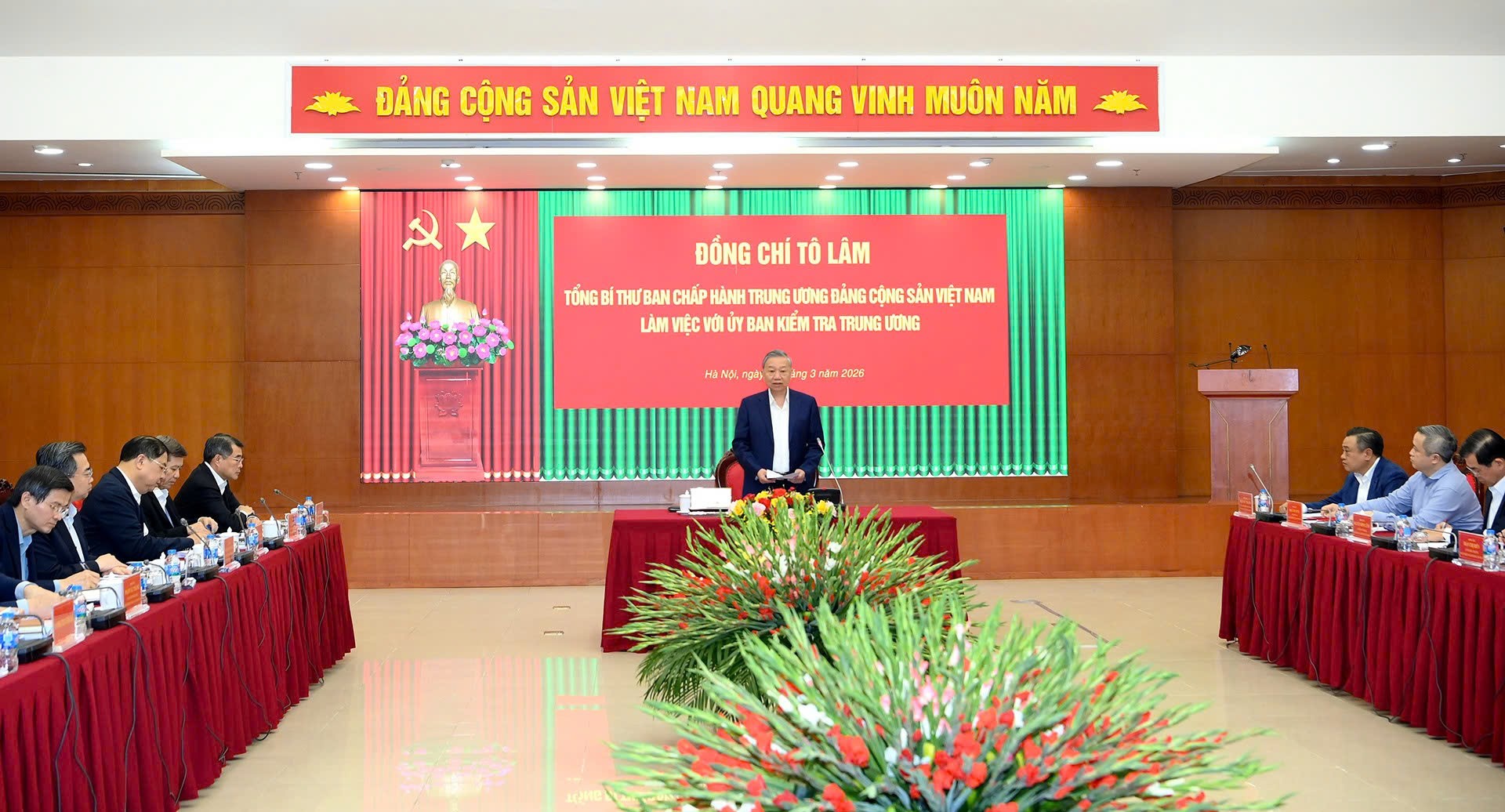 Chiều 5/3, tại Hà Nội, Tổng Bí thư Tô Lâm chủ trì làm việc với Ủy ban Kiểm tra Trung ương về kết quả thực hiện nhiệm vụ tham mưu xây dựng, hoàn thiện thể chế chuẩn bị cho Hội nghị lần thứ hai, Ban Chấp hành Trung ương Đảng khóa XIV.