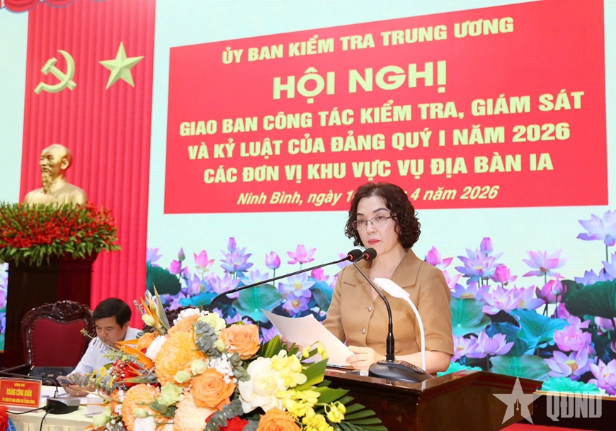 Chiều 10/4, tại Quân đoàn 12, Ủy ban Kiểm tra Trung ương tổ chức Hội nghị giao ban công tác kiểm tra, giám sát và kỷ luật của Đảng quý I năm 2026 các đơn vị khu vực Vụ Địa bàn IA. Đồng chí Trần Thị Hiền, Ủy viên Trung ương Đảng, Phó chủ nhiệm Ủy ban Kiểm tra Trung ương chủ trì hội nghị.