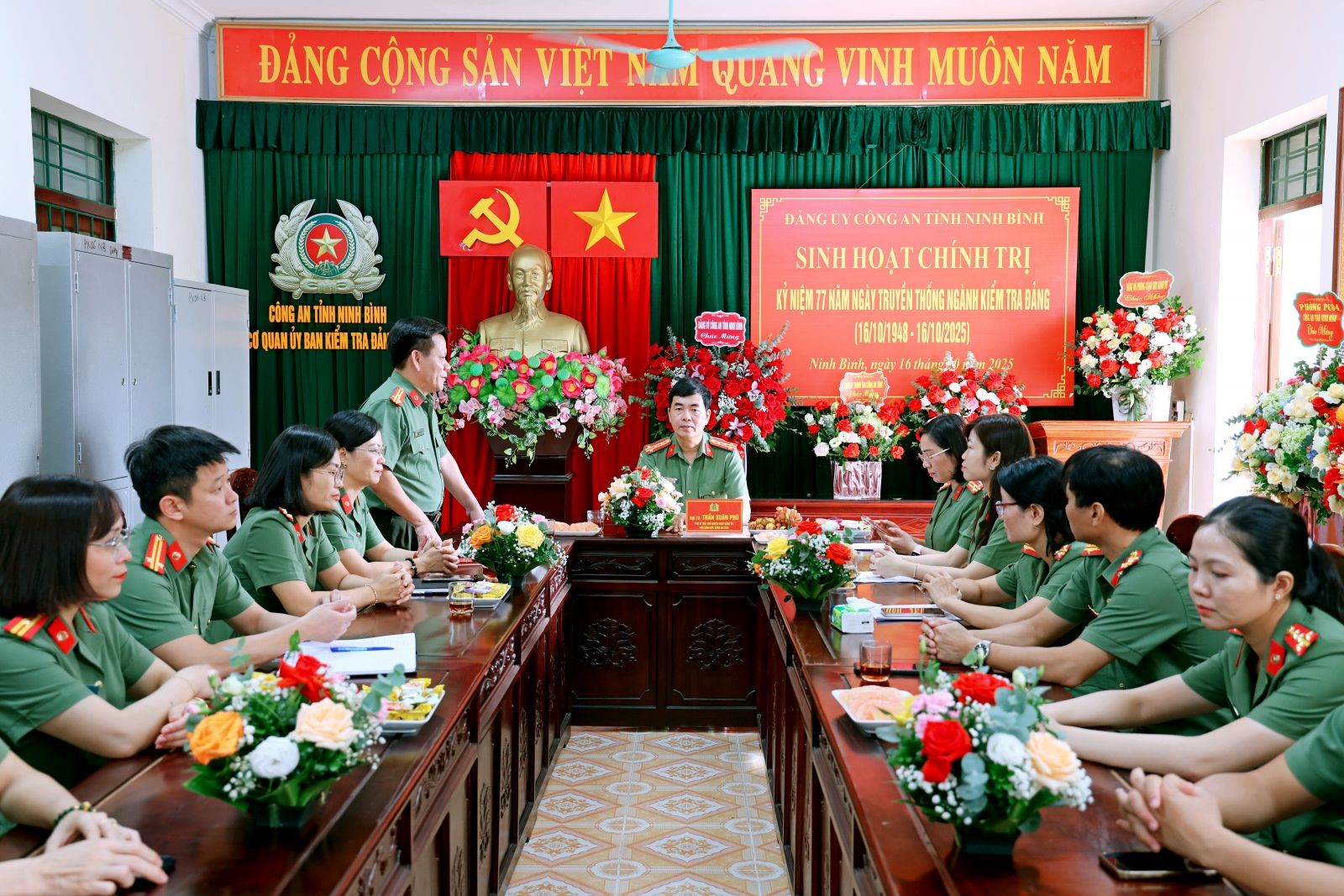 Sáng 16/10/2025, Đảng ủy Công an tỉnh Ninh Bình tổ chức buổi sinh hoạt chính trị nhân kỷ niệm 77 năm Ngày truyền thống Ngành Kiểm tra Đảng (16/10/1948-16/10/2025).