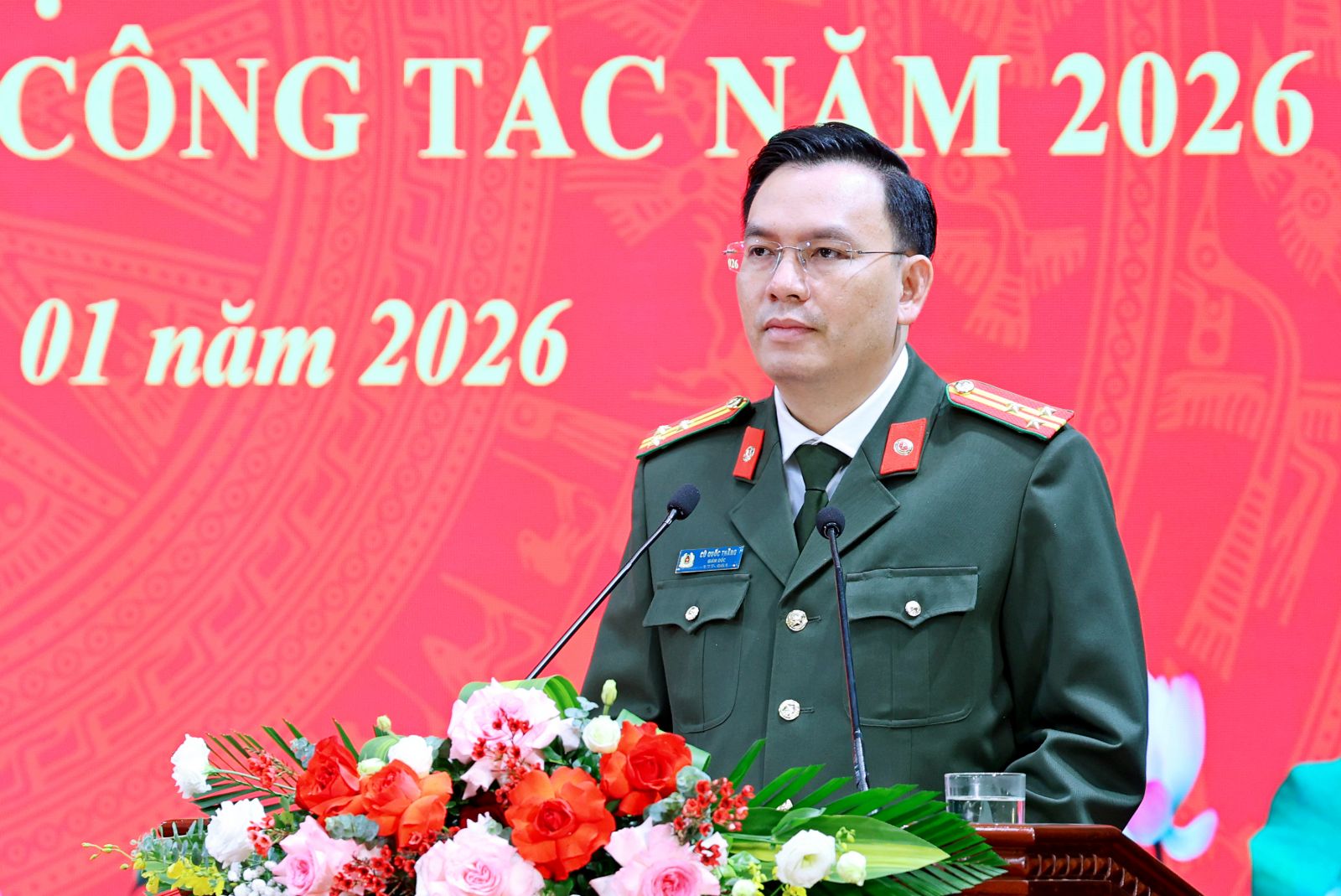Đồng chí Thượng tá Cù Quốc Thắng, Ủy viên Ban Thường vụ Tỉnh ủy, Bí thư Đảng ủy, Giám đốc Công an tỉnh chủ trì Hội nghị.