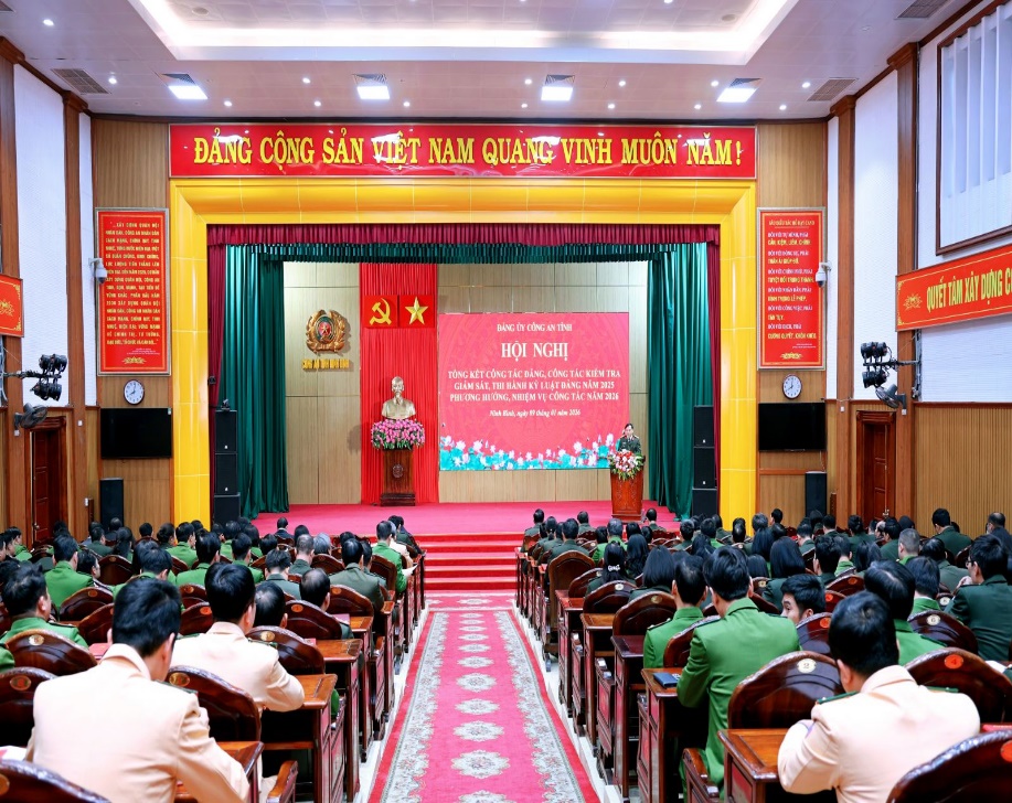 Sáng ngày 9/1/2026, Đảng ủy Công an tỉnh Ninh Bình tổ chức Hội nghị tổng kết công tác Đảng, công tác kiểm tra, giám sát, thi hành kỷ luật Đảng năm 2025, triển khai phương hướng, nhiệm vụ công tác năm 2026. Đồng chí Trần Huy Tuấn, Phó Bí thư Tỉnh ủy, Chủ tịch UBND tỉnh dự và chỉ đạo Hội nghị.