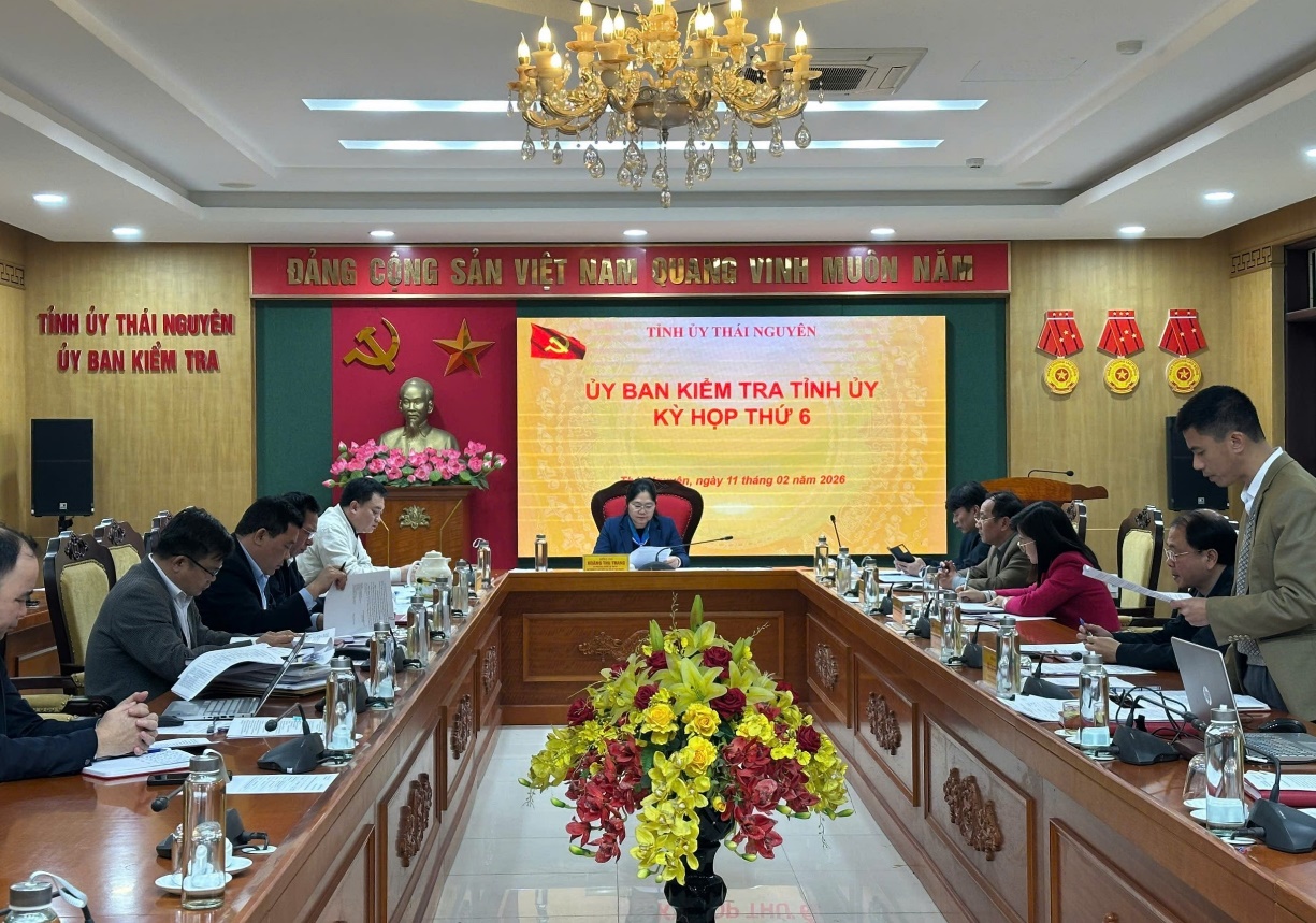 Ngày 11/2/2026, đồng chí Hoàng Thu Trang, Ủy viên Ban Thường vụ, Chủ nhiệm Ủy ban Kiểm tra (UBKT) Tỉnh ủy Thái Nguyên chủ trì Kỳ họp thứ 06 của UBKT Tỉnh ủy để xem xét, kết luận một số nội dung về thi hành kỷ luật đảng viên.