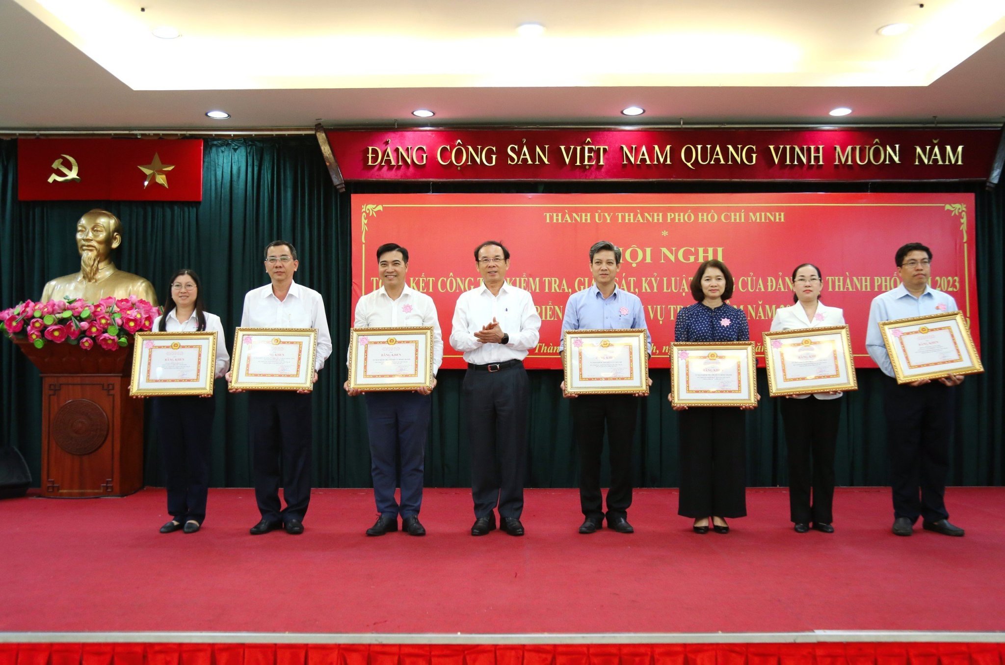 Nhân dịp này, BTV Thành ủy Thành phố Hồ Chí Minh tặng Bằng khen cho 7 tập thể; UBKT Thành ủy Thành phố Hồ Chí Minh tặng Giấy khen cho 48 tập thể và cá nhân có thành tích xuất sắc tiêu biểu trong công tác kiểm tra, giám sát của Đảng trong năm 2023./.